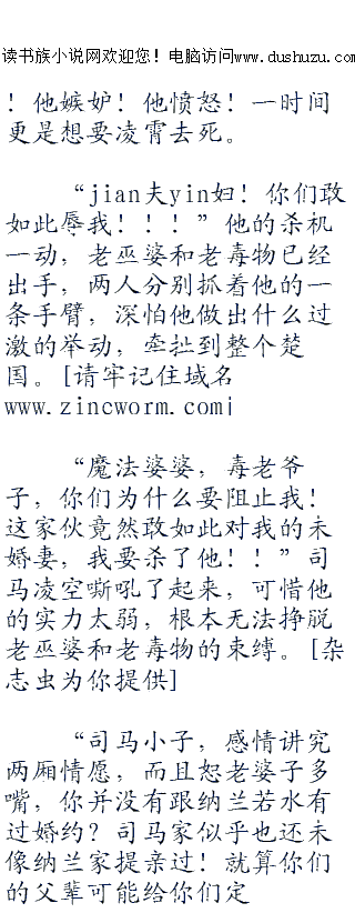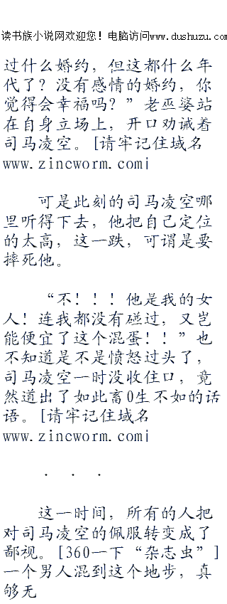 ;;;;司马凌空顿时觉着情势不对头,眼光四处观察,一下子就知道,自己似乎惹了老毒怪和老巫婆这两个人的不快。