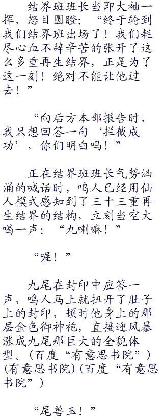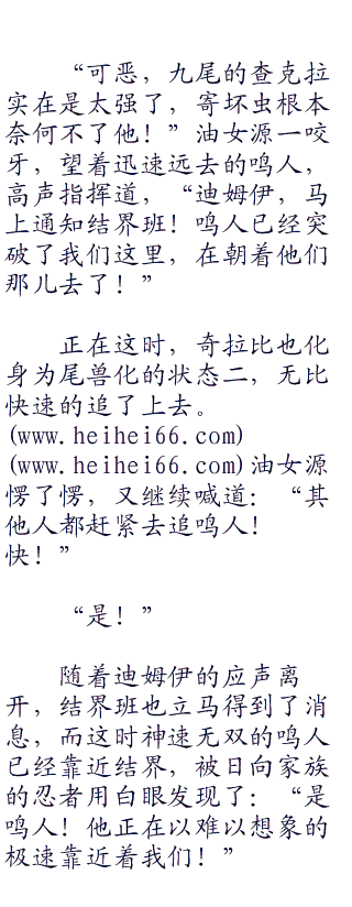 油女源大惊失色,全力控制寄坏虫追了上去,但无一例外都被强悍的九尾外衣给尽数弹开。