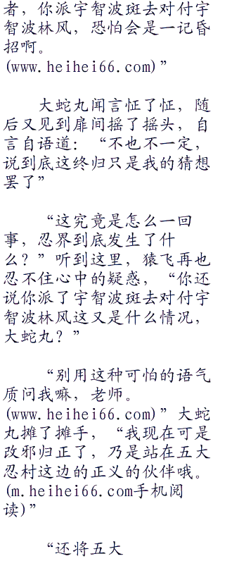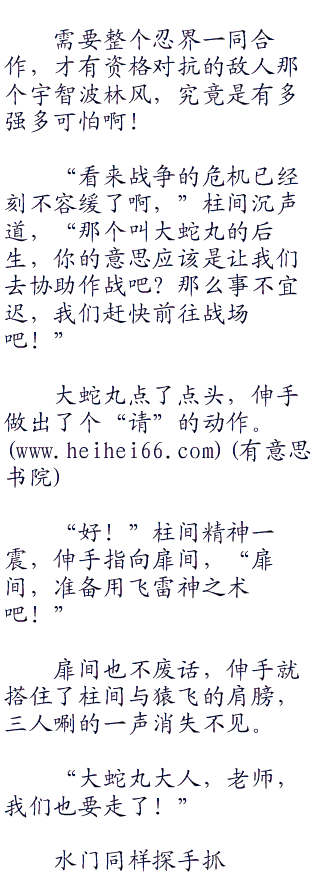 大蛇丸的话刚说完,场上又再次静了下来,大蛇丸还以为是众人被自己的手段给镇住了,可不一会扉间的开口就打破了他的自以为是:“叫大蛇丸的施术