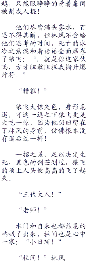 林风嗤笑一声,举起铁砂之剑继续砍向扉间,而扉间竟还在震惊之中,一时间没能回过神来。