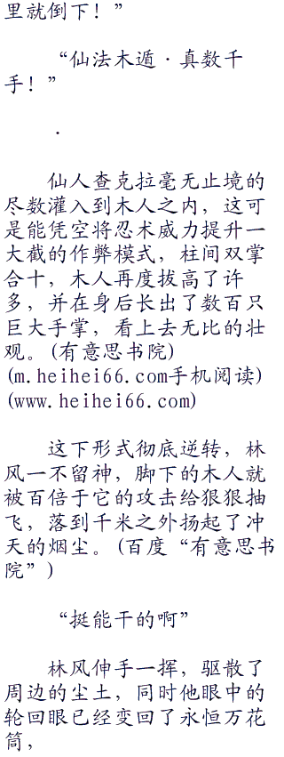 林风的笑容更甚,当即指挥木人欺身而上:“用你的身体实际感受一下吧!”