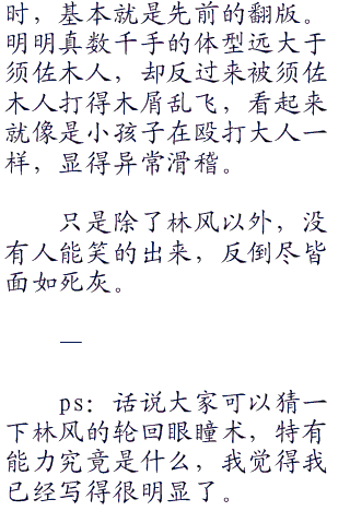躺在地面上难以动弹的自来也、扉间和水门等人,都马上被飓风席卷上天,然后又重重的摔下,而忍联合军的数万忍者更是纷纷东倒西歪,站立不稳!