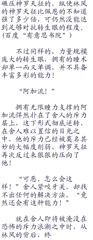 若不是林风自身还具备暗暗果实的力量,此时说不定早就像当初的佩恩一样被神罗天征给反弹出去了。