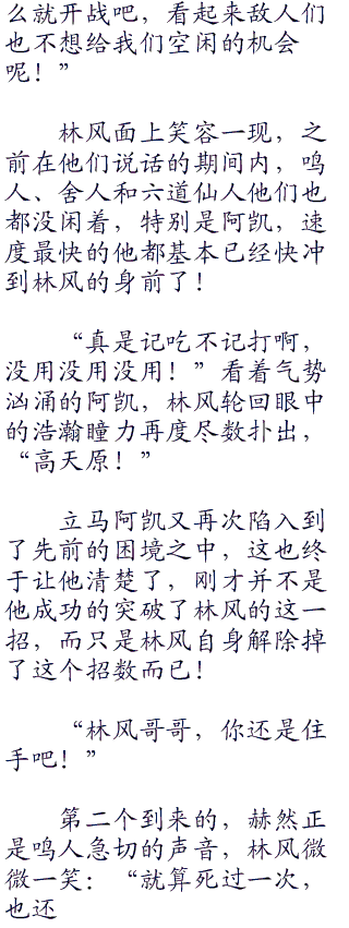 佐助也不甘寂寞,插进话来,林风点头道:“你和鸣人也算是多年的好基友了吧,就和鼬一起去挡挡他吧哦对了,记得要按我说的做哦。”