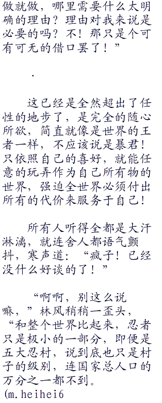 林风深吸了一口气,沉声开口道:“其实,我曾经有个从小一起长大的妹妹,但她惨遭忍者的毒害,不醒早逝,所以我要毁灭这个世界为她复仇!”
