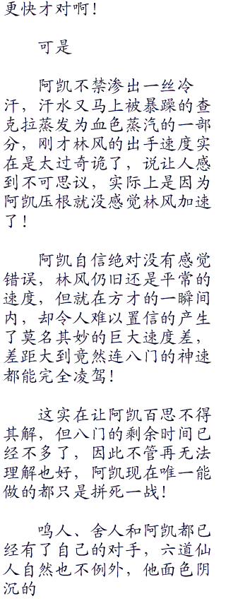 阿凯的夕象是要从一足开始连续向着最后的五捉使用的,因此在刚才被金轮转生爆打断后,他只能重新用起。但越来越高的速度与威力达成的效果却微乎其微,无论再强的招数打不到敌人也是徒劳的。