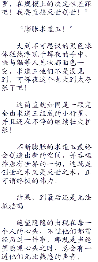 这个状况让辉夜心中大惊失色,按理说她应当早就没有本能这种低级的东西存在了才对,可事实情况却令她万分不解,但辉夜还是迅速的调整了过来,冷笑道:“大言不惭!我便是查克拉之祖,我就是查克拉本身!没有任何东西,可以超越我的认知!”