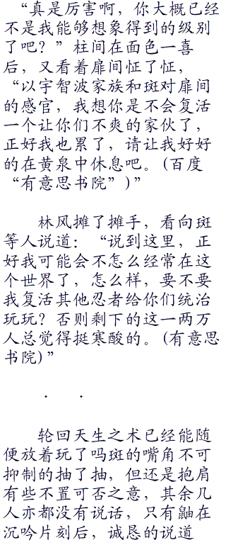 鼬和佐助听得都有些不明觉厉,他们的力量水准都还不够,仍然需要漫长的积累。