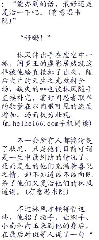 林风又拍了拍手,下一刻一切忍界大战的存活者,包括忍联合军全员,和退去休整的晓组织,与那些被打残的历代火影们,尽皆带着莫名其妙的迷茫表情出现在他的面前。