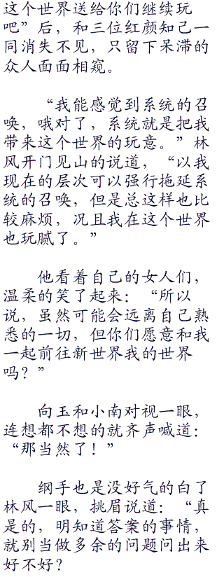 “也就是我想对了,找准了方法而已,”林风微微一笑,“如果是其他的力量在进阶之后,应该也还是达不到我如今的层次的。”