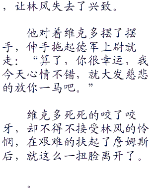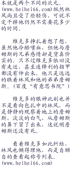 眼看林风落回了地面上,而詹姆斯却软软的瘫倒了下来,维克多似乎还无法相信眼前发生的事情,他手指无意识的一松,雪茄就已经掉在了雪地之中,发出呲呲的声响。