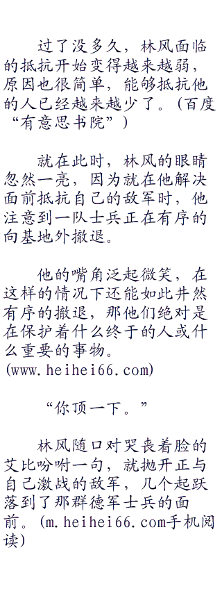 “呼要以这副瘦弱身体去模仿最佳体操运动员美国队长,还真是有点不容易啊。”林风擦了擦并不存在的汗,继续向基地内部前进,“忘了留一个活口了,看来我下手的时候还需要再注意一点。”