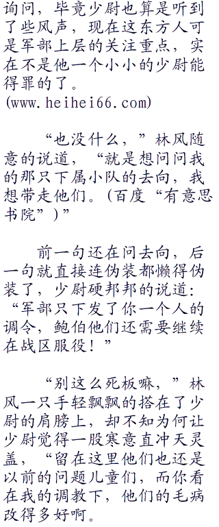 “等一下,我还要问一些事情。”林风忽然又叫住了霍恩斯,“我的那个小队会怎么样?”