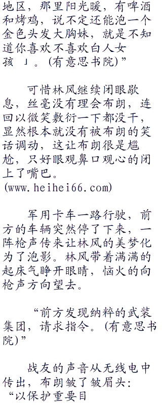 “林,度过这片前线区,你就到了没有危险的后方了,很快就有人接你到科学团队所在的