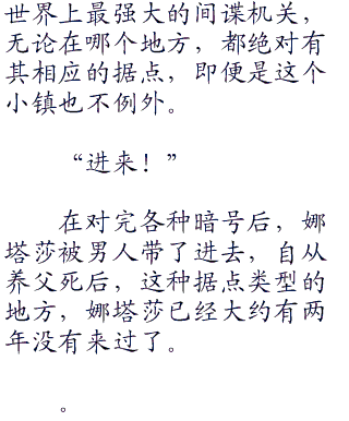 又是一个醉醺醺的大汉走出酒吧槅门,踢了踢娜塔莎的脚,娜塔莎抬起头,茫然的看着他。