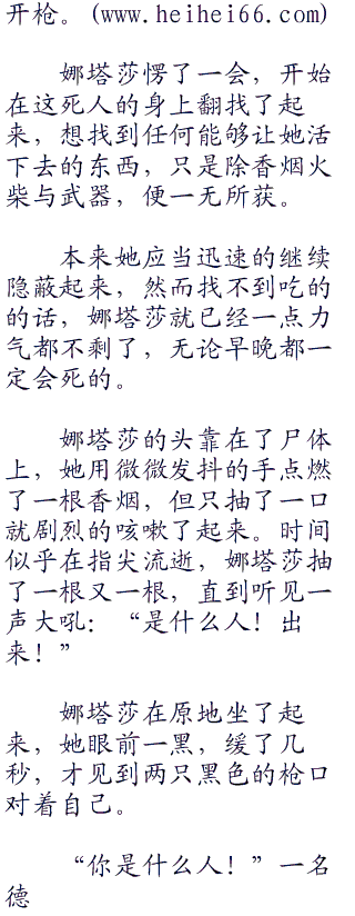 娜塔莎俯身捡起那把枪,咔嚓一声子弹上膛,一旁