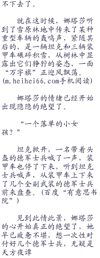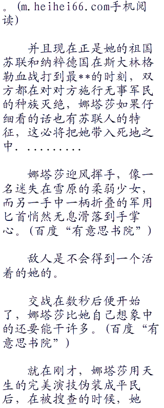 在这种时候,她却被全副武装的德军士兵盯上,这本来应当是绝体绝命的死境。