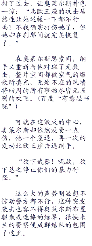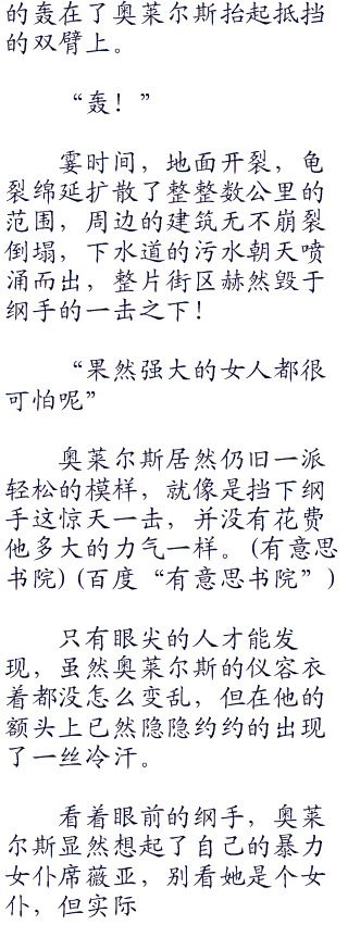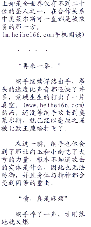 眼看布都御魂之剑就要打在奥莱尔斯身上,奥莱尔斯先一步的发动了北欧王座,在须佐能乎内的向玉更早的被击飞了出去。