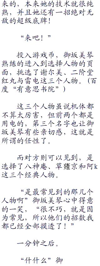 其实经常光临这家店,还有个原因,那便是这家店的游戏非常齐全,连许多年前的老式街机都有,可谓是非常的有怀旧情怀。而比起现在的各类高科技电玩,御坂美琴还是觉得这种老旧街机要更过瘾一些。