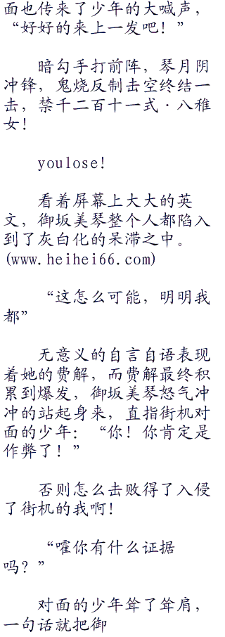 在内心努力的说服了自己,御坂美琴的指尖悄悄的分出了一丝电流,无声无息的侵入到了街机之中。