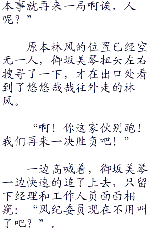 眼看对方又是贴过来一记葵花三式起手,御坂美琴暗暗咬了咬牙:“没办法,就用那招吧!反反正这就只是游戏而已嘛没关系的啦”