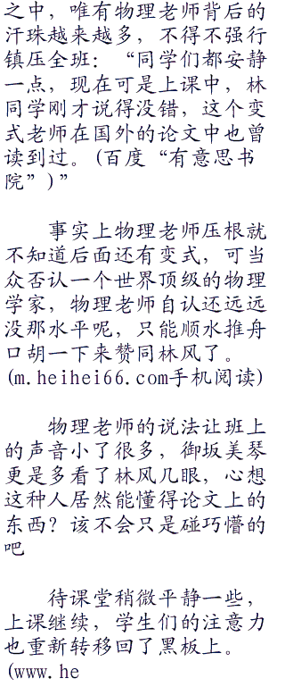 御坂美琴内心持续小剧场中,而在讲台上,物理老师也擦着汗讲完了一段,下意识的用忐忑不安的声音问道:“那个林博同学,这里是这样没错吧?”