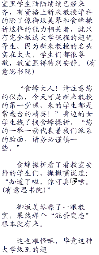 “嗯,一定是这样。”御坂美琴对自己幻想的新教授形象很满意。