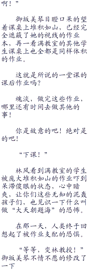 只有御坂美琴惊怒交加的声音,爆发在了寂静的教室之中。