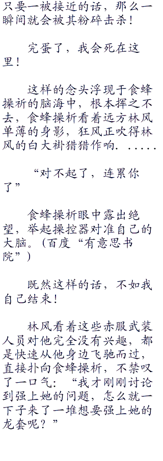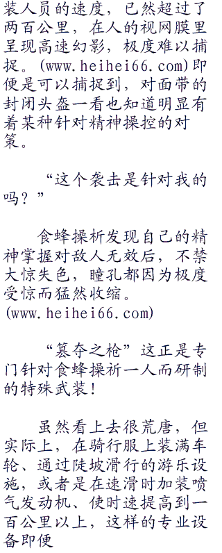 人类的体重,以如此快的超高速,仅仅一次碰撞,就能将人体的骨骼全身碾碎,再加上对方的武器只要一个瞬间,就可以把人体完全碾成碎片。