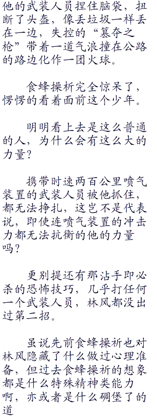 周围的追兵都出现了一瞬间的呆滞,领头的更是狠狠一咬牙:“居然直接用拳脚轰击我们却不受伤,难不成是lv4的大能力者吗!?”