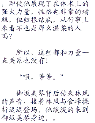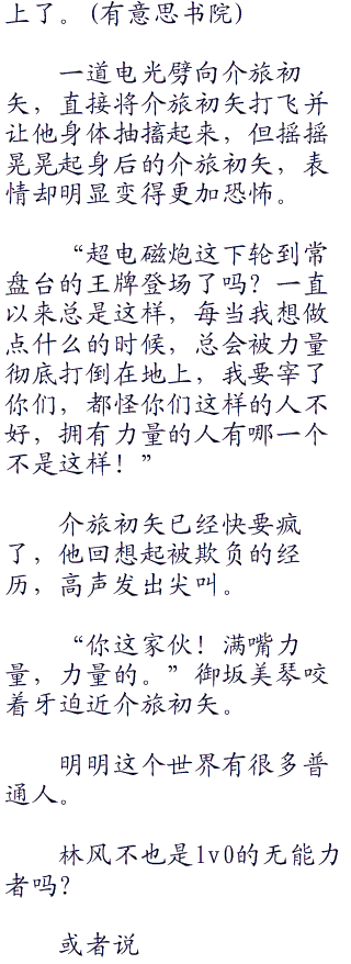 御坂美琴一脸的怒气就要爆发,她的浑身早有电光闪烁,显然是想找林风决斗。
