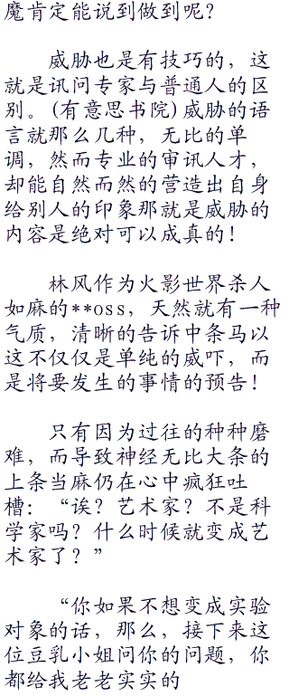 只是将餐盘丢到空中再落到手里的时间,就将十几个混混全部打倒,这令人难以置信的速度和力量简直就跟sf小说一样嘛。