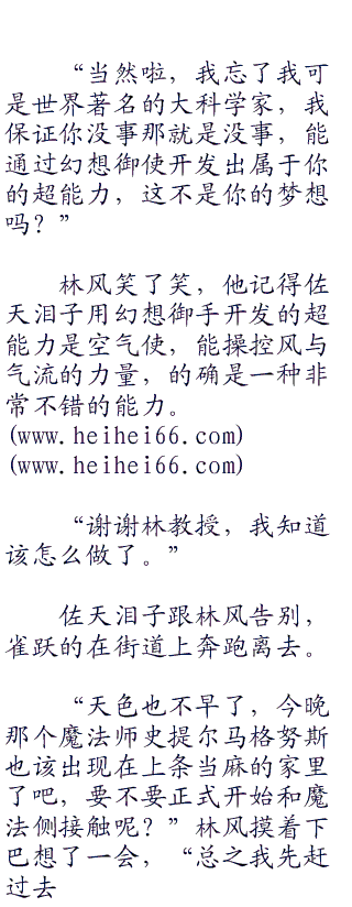 “这样啊,你这么想成为能力者的话”林风刻意拖长音,“那就放心大胆的使用吧,我包你没事。”
