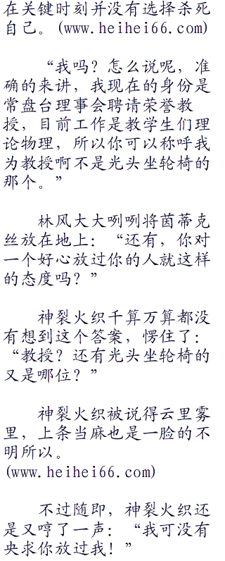 已经失去所有体力,确认无法逃走的神裂火织放弃逃走,缓缓的跟在两人身边,她盯着林风,冷冷的问道:“你到底是谁?”