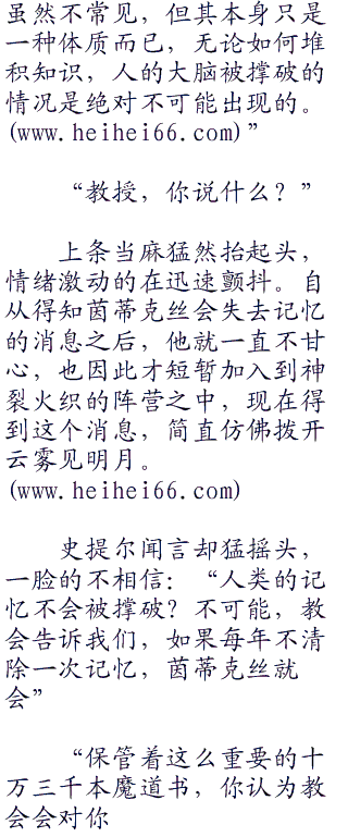 “我听说你们认为茵蒂克丝要将百分之八十五的大脑用于记忆十万三千本魔道书,只能使用百分之十五大脑,所以每年不清除一次记忆就会死。”