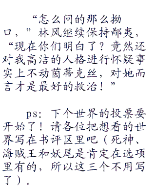 “魔法名这么土的东西我才没有啦,”林风摆摆手,一副毫无紧张感的模样,“至于我的咒语么嗯,你们三人应该蛮相配的,能再逼出一条咒语也说不定。”