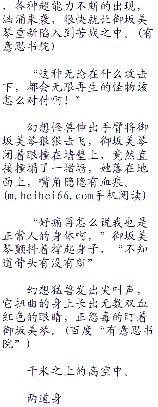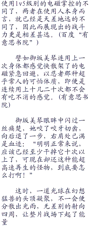 不御坂美琴眯了眯眼睛,那怪物并不是吸收了雷电,亦或是免疫了伤害,而是确确实实的被伤到,而后又瞬间恢复并再度生长!