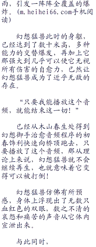 “幻想猛兽”发出刺耳的尖啸声,身体变得越来越大,越来越多的警备队赶到现场,开枪攻击它,可弹幕落在怪物的身体上连痕迹都无法留下。