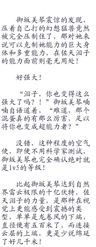 御坂美琴惊讶的抬起头,她感觉到巨大的风暴正在酝酿,强大的吸力从云层的漩涡中心产生。