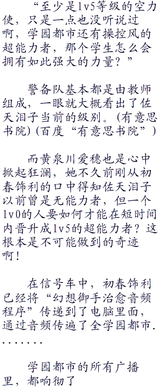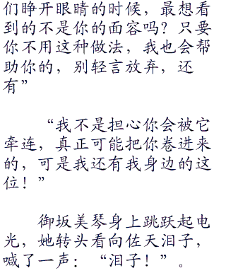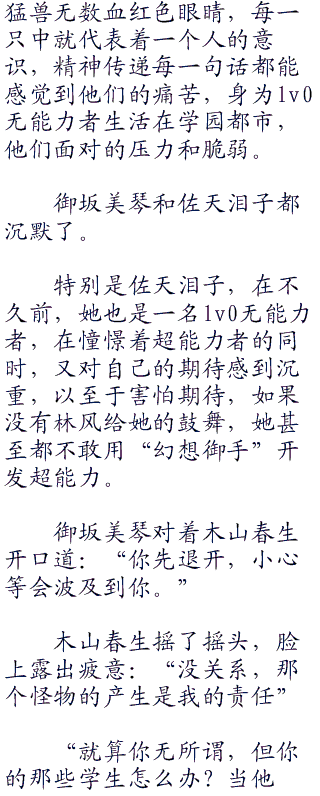 御坂美琴产生了一种好想跟林风决斗的激愤心情,但同时,御坂美琴也似乎明白了什么:“难道是他帮助了泪子,让她变成高位能力者?不不不再这么说这也太”