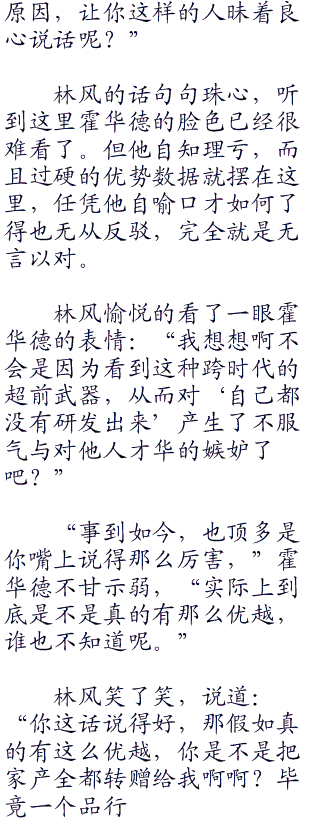 林风说的这话,除了军方的人员之外,其他的兵工厂大佬脸色听了都有点冷,就连一群人中的霍华德也表情微变。