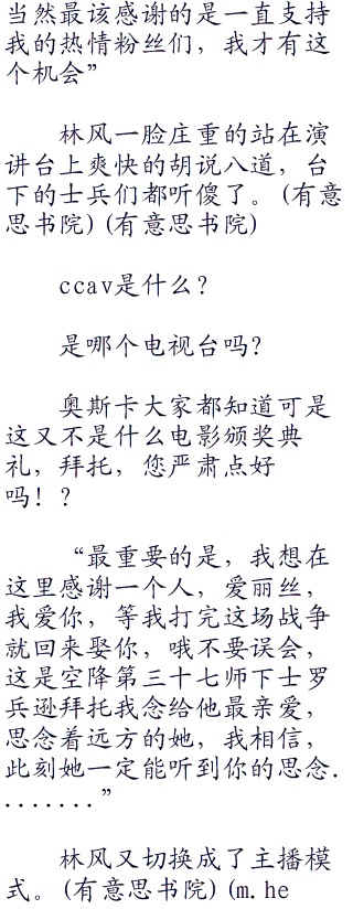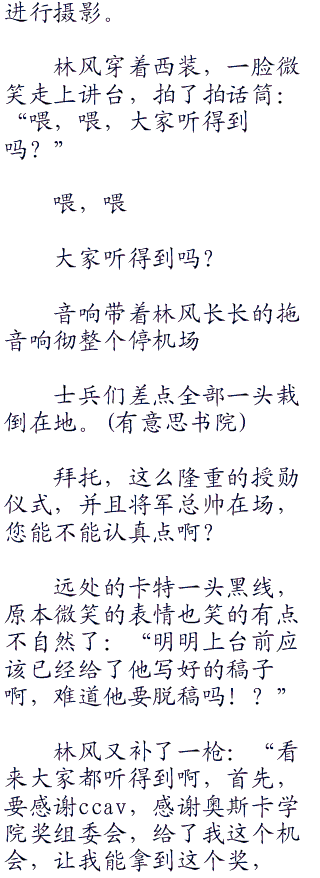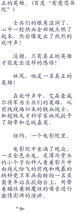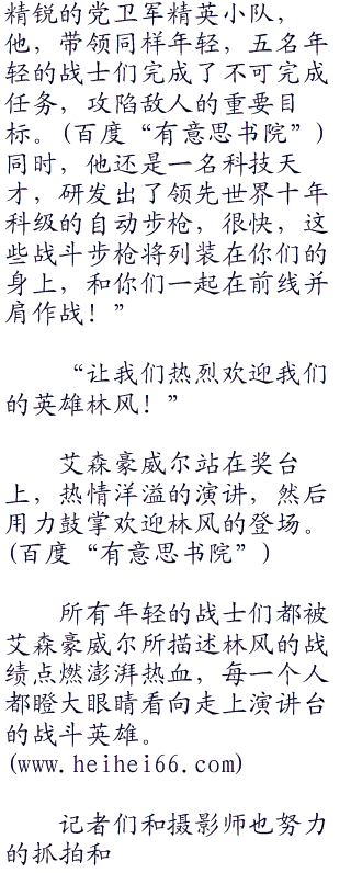 军方还派人来通知林风,届时,艾森豪威尔将军将在一群即将奔赴前线战场的士兵面前对他进行授勋,到时候纽约的各大媒体将进行采访,拍摄短片,作为提升士兵士气的宣传片。