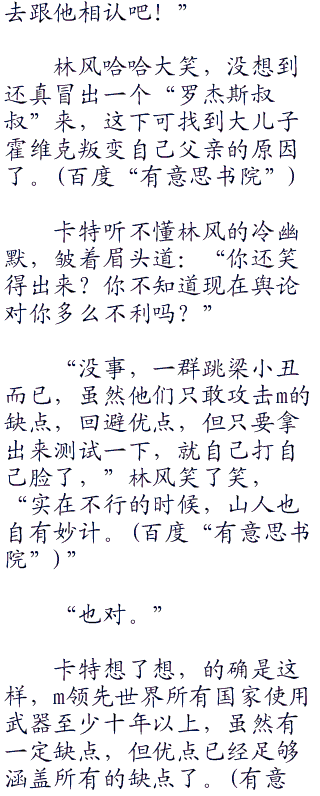 “你还有心情笑?你不知道现在群众对你的舆论有多么不利,总统还特招菲利普上校去了一趟白宫!”