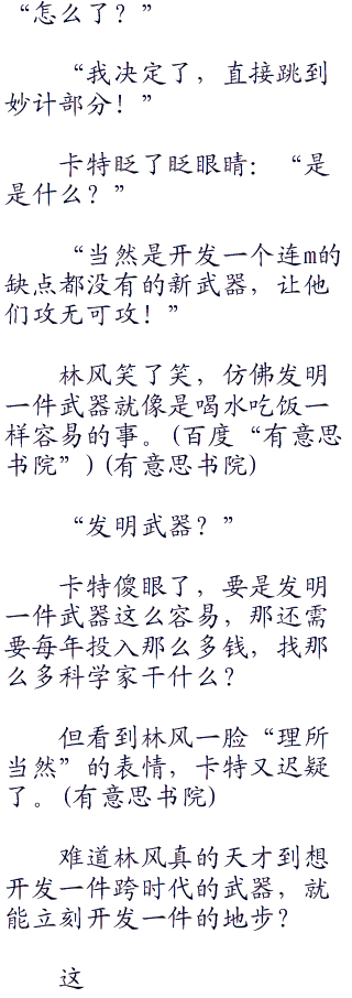 卡特一脸头疼的表情:“虽然不太喜欢你这种说法,但这次也确实是这样了,居然把划时代的得如此不堪按理来说,军方高层应当能认清价值才对啊。”