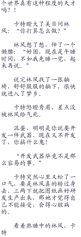 林风睁开眼睛,看到怒发冲冠的卡特:“怎么了?”