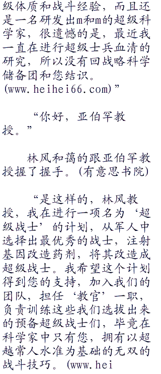 “您好,林风教授,我听说过你很久了,不仅有着超级士兵般的超
