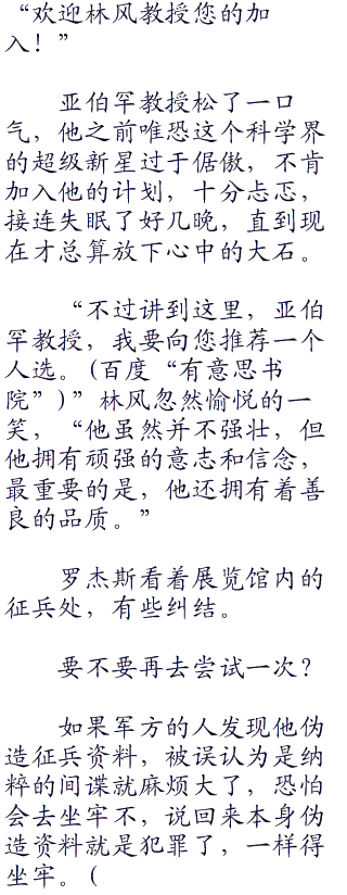 “对了,林风,跟我去见亚伯罕教授,我们有一个大计划希望得到你的支持。”