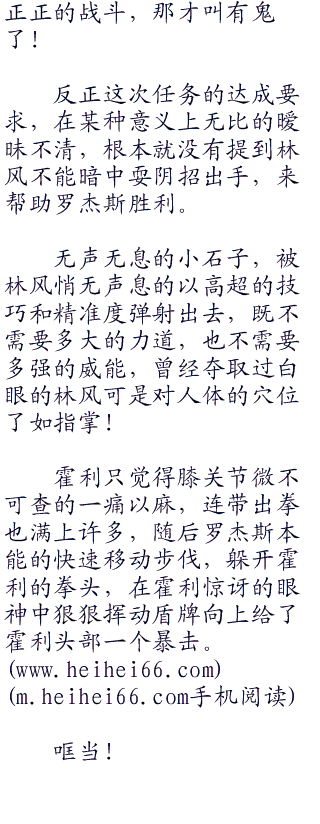 霍利的身高足有一米八八,站在罗杰斯面前,就像一面无法被攻破的铁壁,他狞笑着说道:“小个子,虽然我不知道林风教官为什么会偏爱你这种瘦猴子,还特意教导你格斗技巧,或许是林风教官的口味独特,喜欢你这种身材的货色?不过,我会用拳头教你,什么叫做纯爷们!”