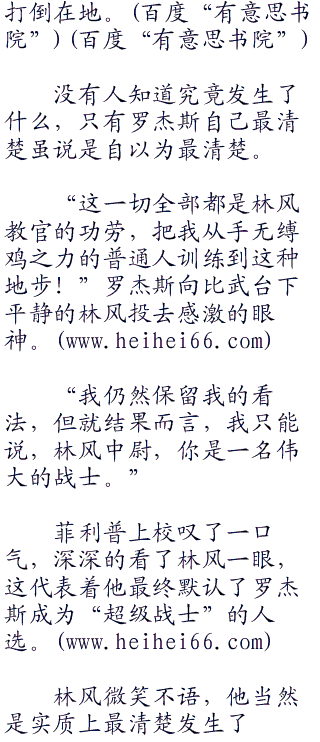 在所有战士中,除了林风以外,他其实最倾向选择霍利成为第一名超级战士,毕竟霍利是所有士兵中最优秀的那个。