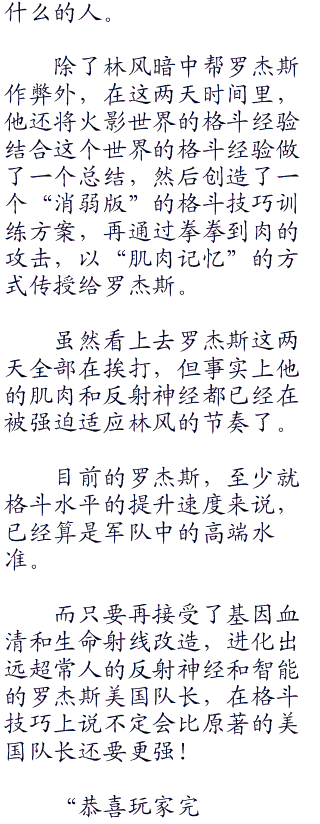 “只有林风教官在所有人都不信任我的时候赏识我,断定我未来会成为一名伟大的英雄!”